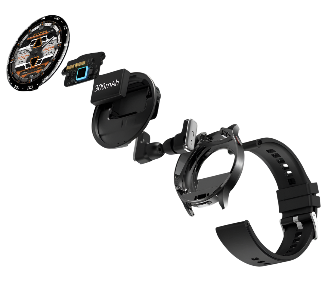 - Built-in earbuds that charge inside your watch. No more forgetting, losing, or untangling.